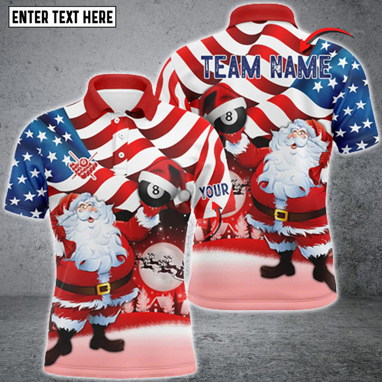 Coolspod Santa Holding Billiard 8 Ball USA Flag Personalized Name 3D Shirt