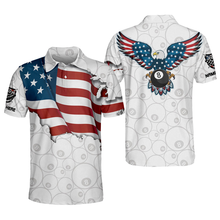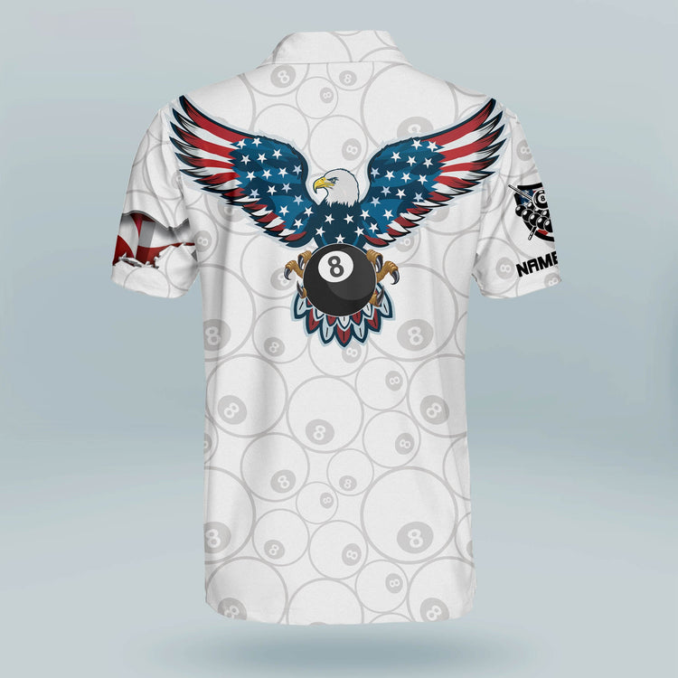 Custom Men's Billiard Dry Fit Short Sleeve Shirts, Eagle Shirt, Flag Billiard Polo Shirt