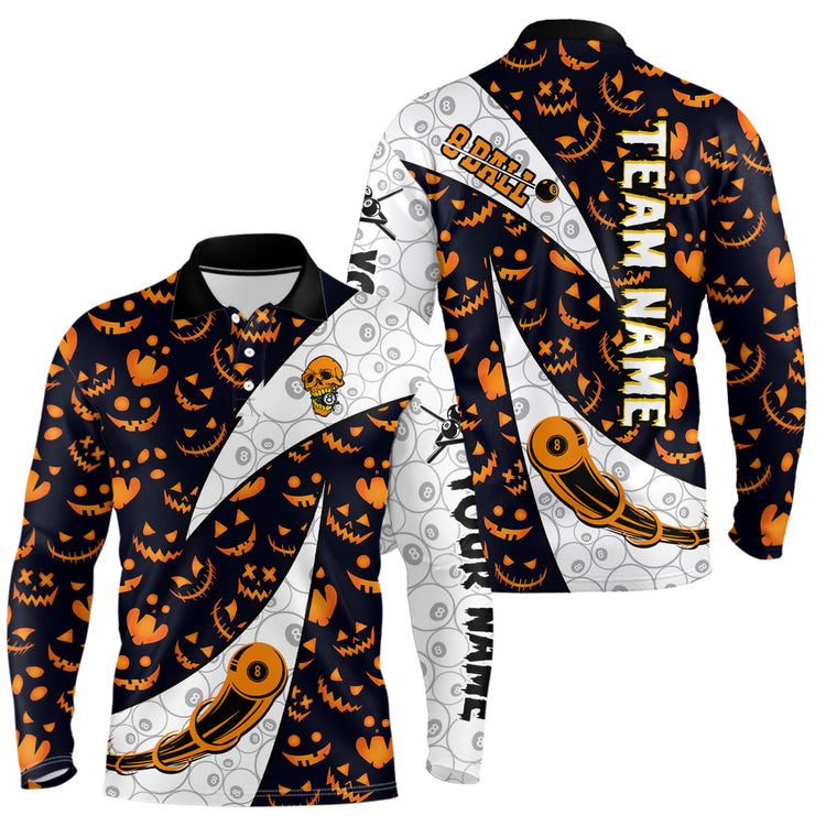 Custom Pumpkin Pattern Halloween Billiard Men's Shirts Best Halloween Polo Shirts