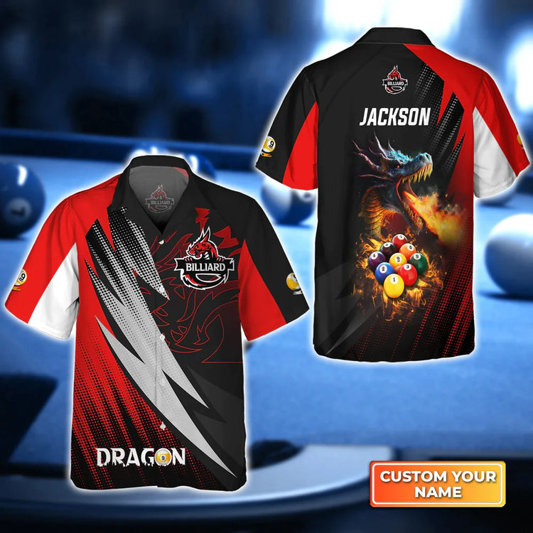 Dragon Team Billiard Pool 9 Ball On Fire 3D Hawaiian Shirt, Billiard team shirt, Billiard shirt for men and women