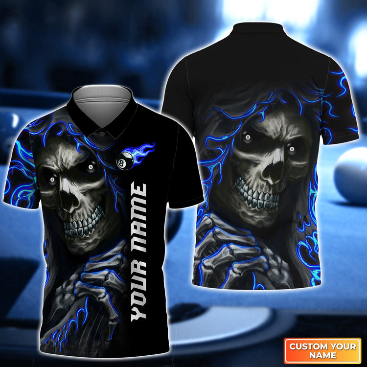 Grim Reaper Billiard Pool 8 Ball Personalized Name 3D Polo Shirt Gift For Billiard Players