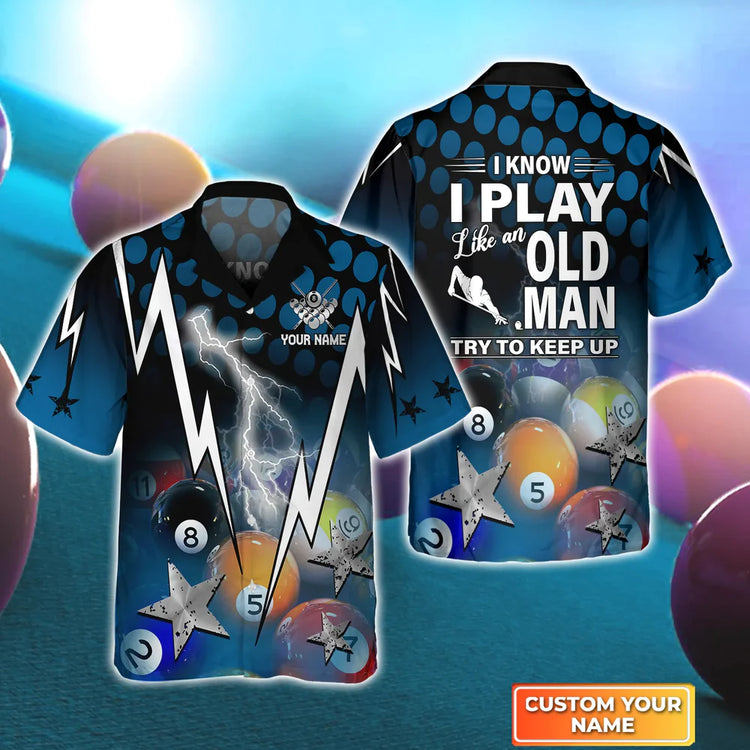 Personalized Name Billiard 3D Hawaiian Shirt for men and women, I Know I Play Like An Old Man Try To Keep Up, Gift For Billiard Player