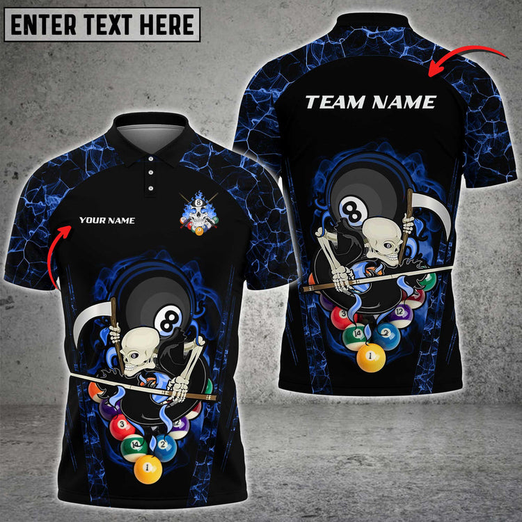 Personalized Name Team Skull Billiard 8 Balls Multicolor Option, Skull Billiard Polo Shirt
