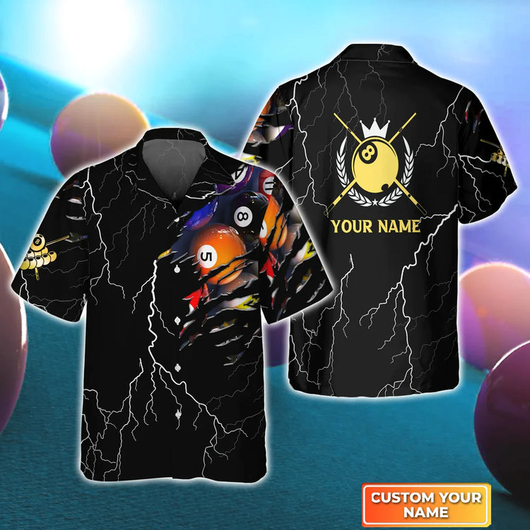 Personalized Name Thunder Billiard Ball 3D Hawaiian Shirt for men and women, Gift For Billiard Player