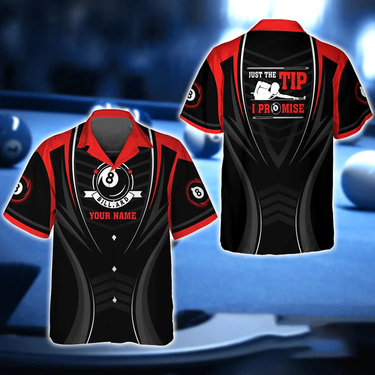 Pool Eight Ball Black Just The Tip I Promise 3D Hawaiian Shirt, billiard team uniform, Gift For Billiard Players