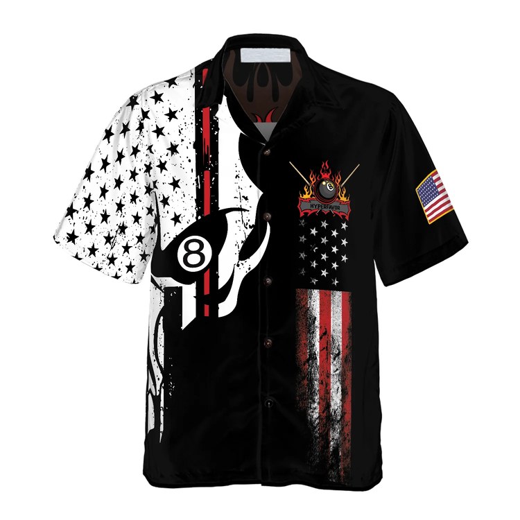 Skull Billiards Pool Hawaiian Shirt, Flag American Skull Billiard Shirt, Uniform Shirt Billiard Player