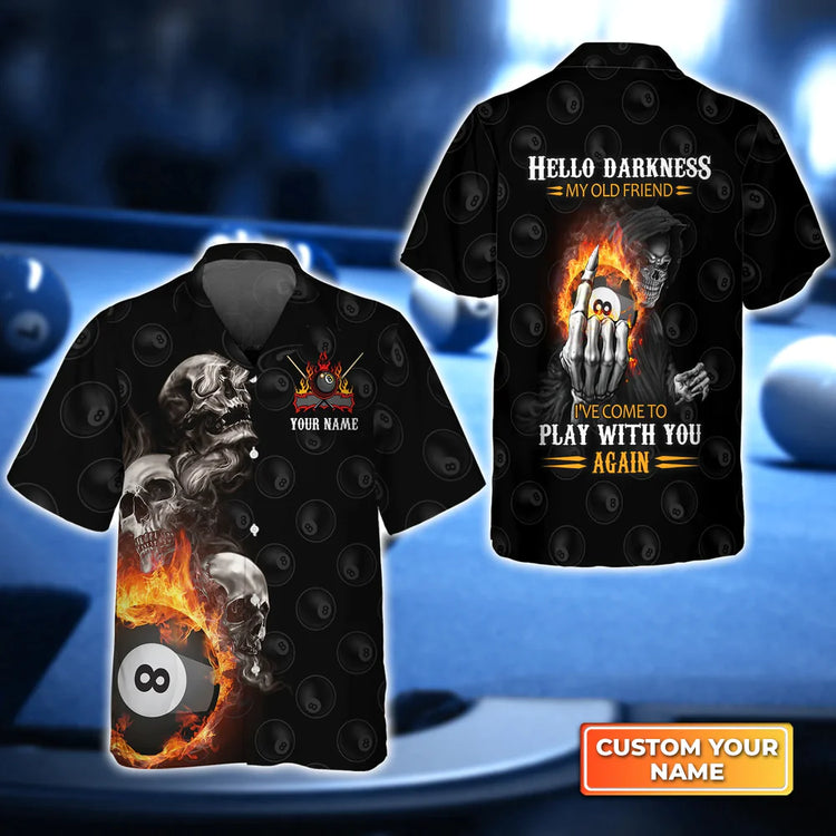 Skull Reaper Billiard Pool 8 Ball Hello Darkness My Old Friend 3D Hawaiian Shirt, Billiard team shirt, Billiard player