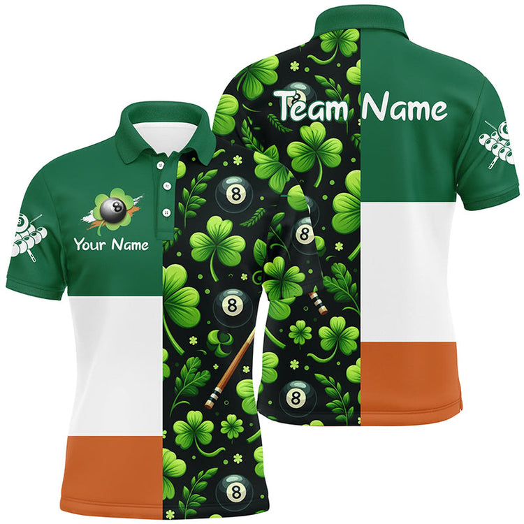 St Patrick's Day Green Clover Custom Men Billiard Polo Shirts, Patrick Day Lucky Billiard Shirts