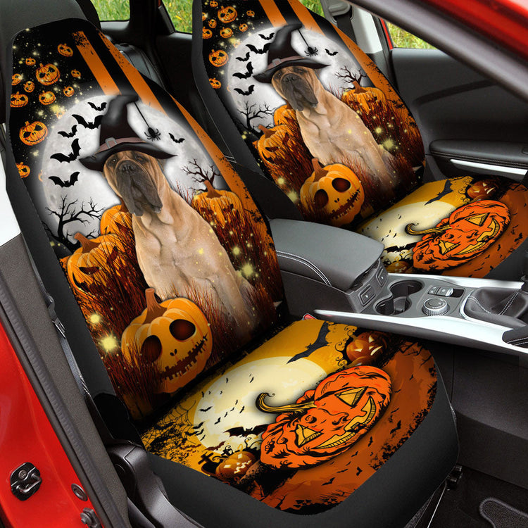 Bullmastiff Halloween Pumpkin Scary Moon Car Seat Covers