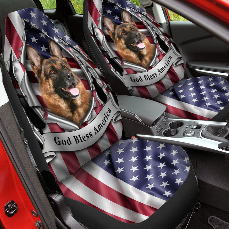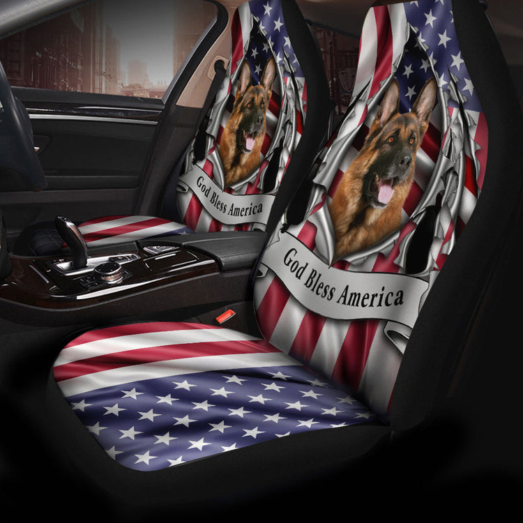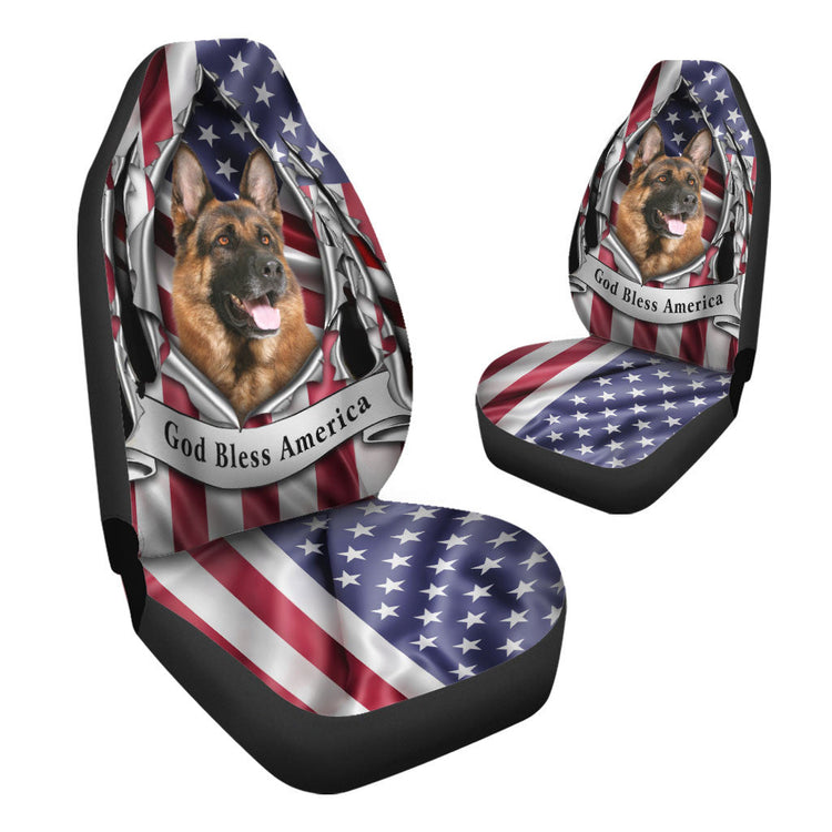 German Shepherd Dog Inside Flag Gob Bless America Car Seat Covers