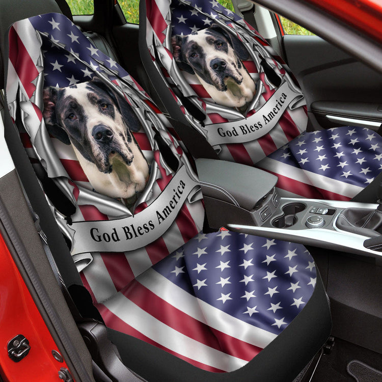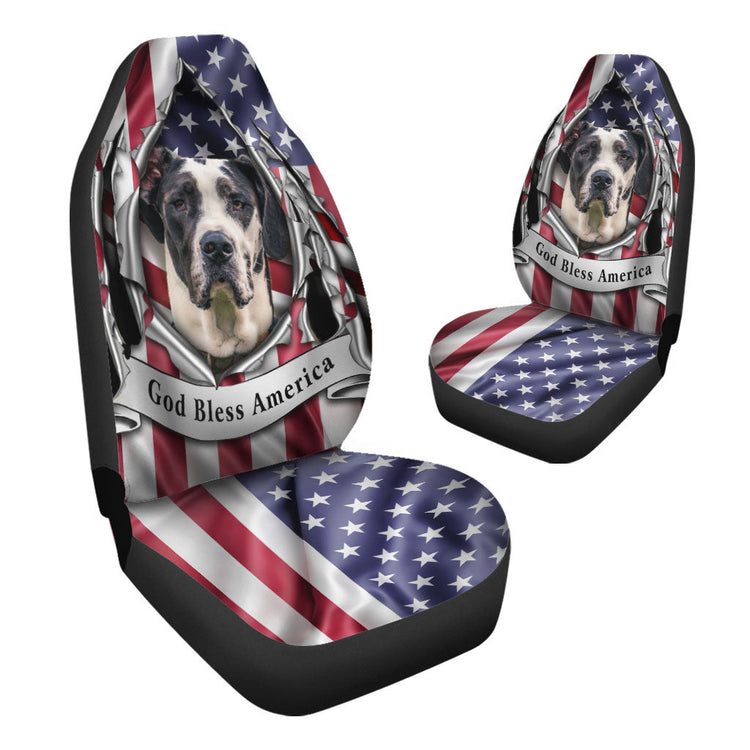 Great Dane Dog Inside Flag Gob Bless America Car Seat Covers