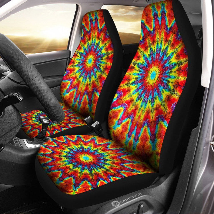 Kaleidoscope Tie Dye Car Seat Covers Custom Hippie Car Accessories