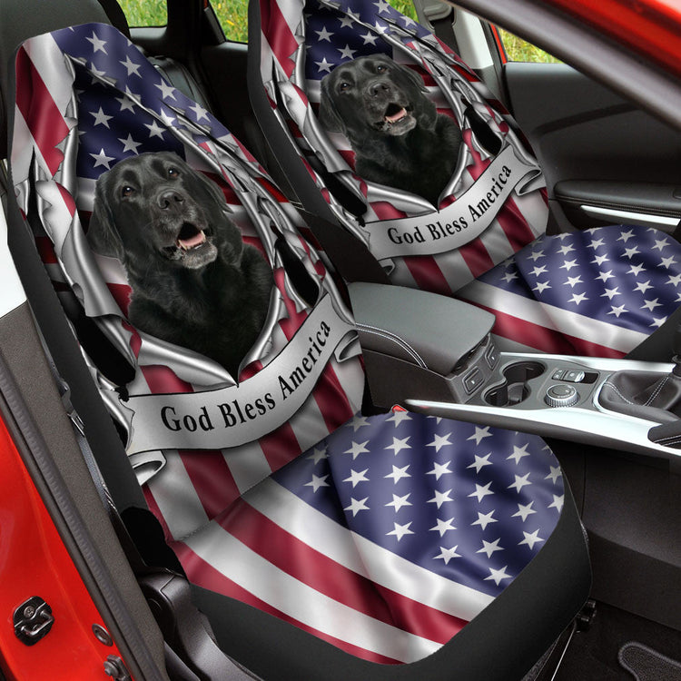 Labrador Retriever Dog Inside Flag Gob Bless America Car Seat Covers