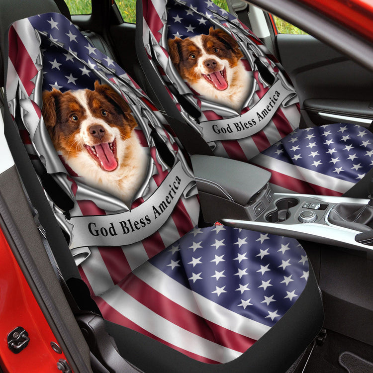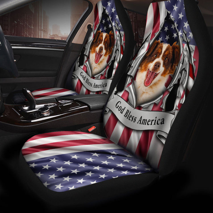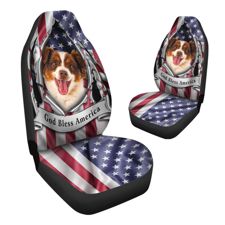 Miniature American Shepherd Dog Inside Flag Gob Bless America Car Seat Covers