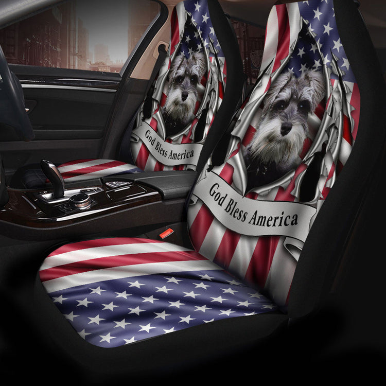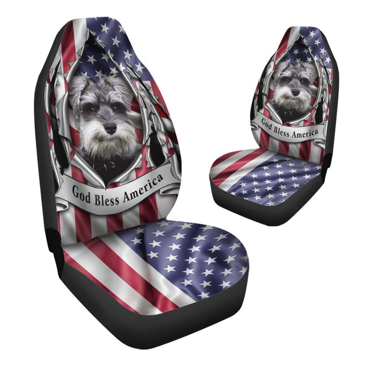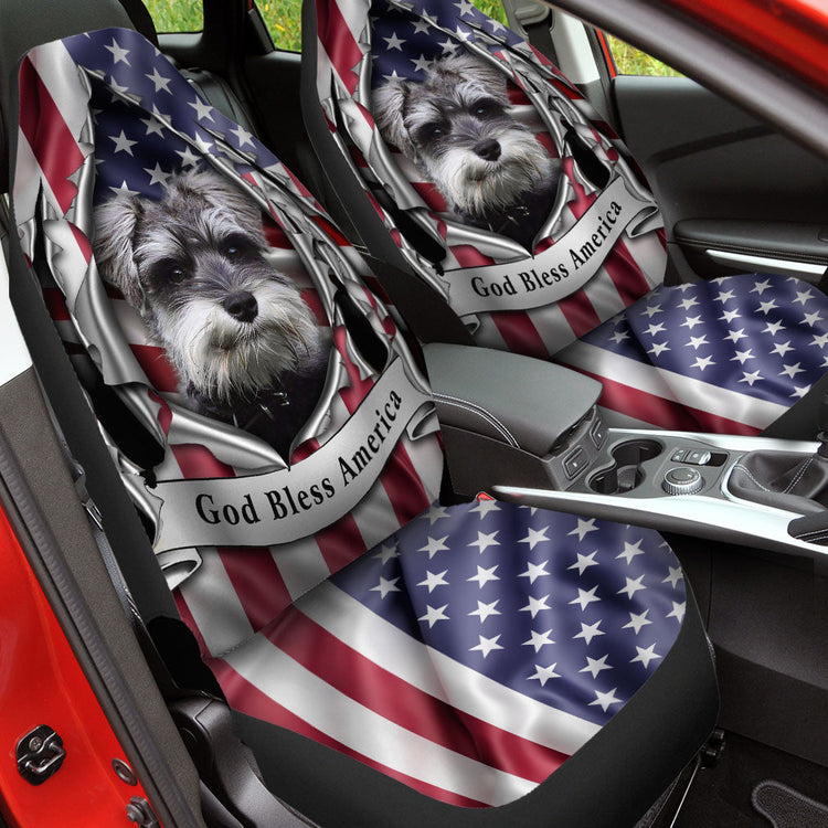 Miniature Schnauzer Dog Inside Flag Gob Bless America Car Seat Covers