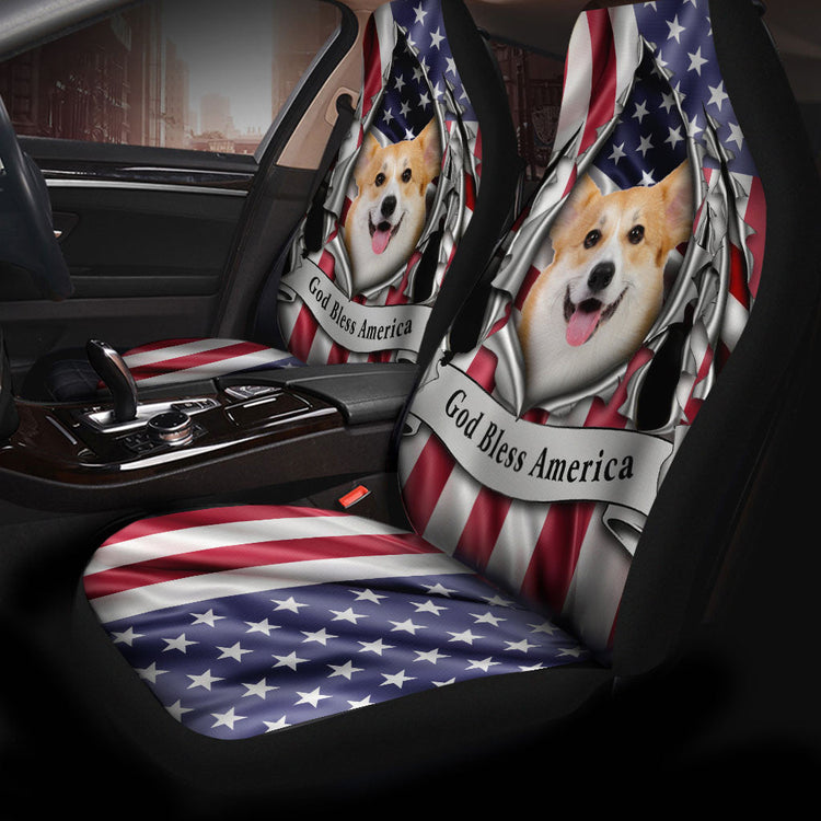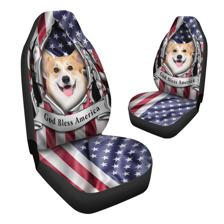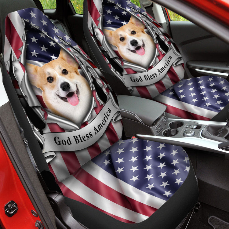 Pembroke Welsh Corgi Dog Inside Flag Gob Bless America Car Seat Covers