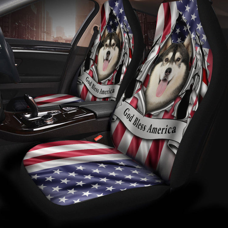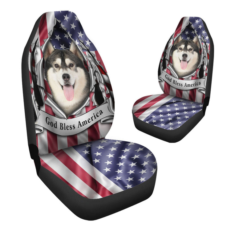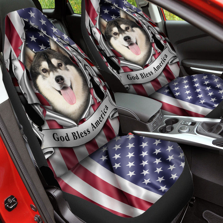 Siberian Husky Dog Inside Flag Gob Bless America Car Seat Covers