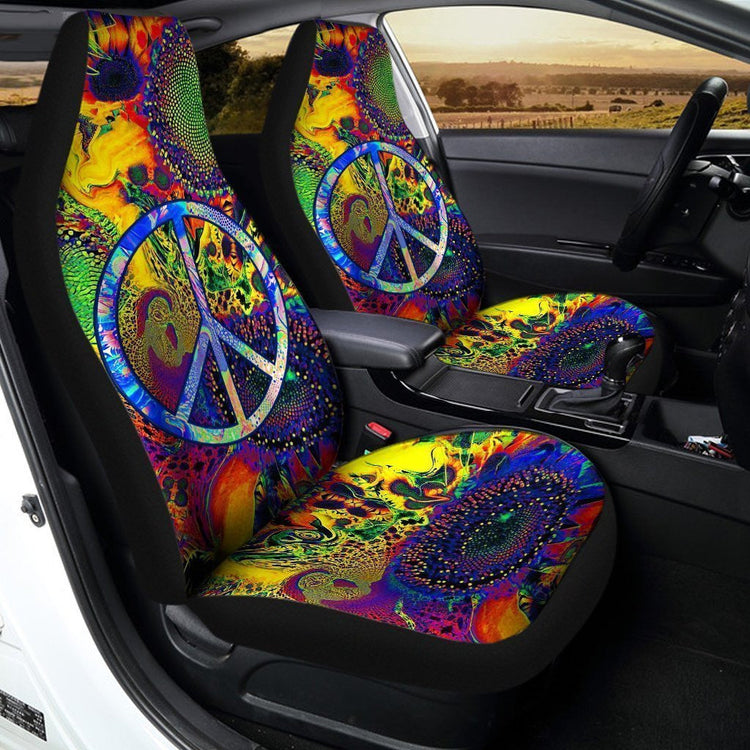 Sunflower Peace Car Seat Covers Custom Hippie Car Accessories