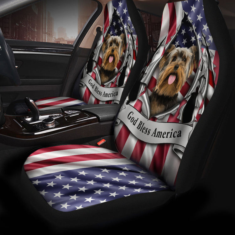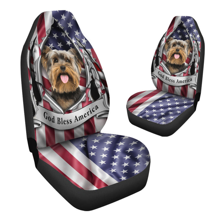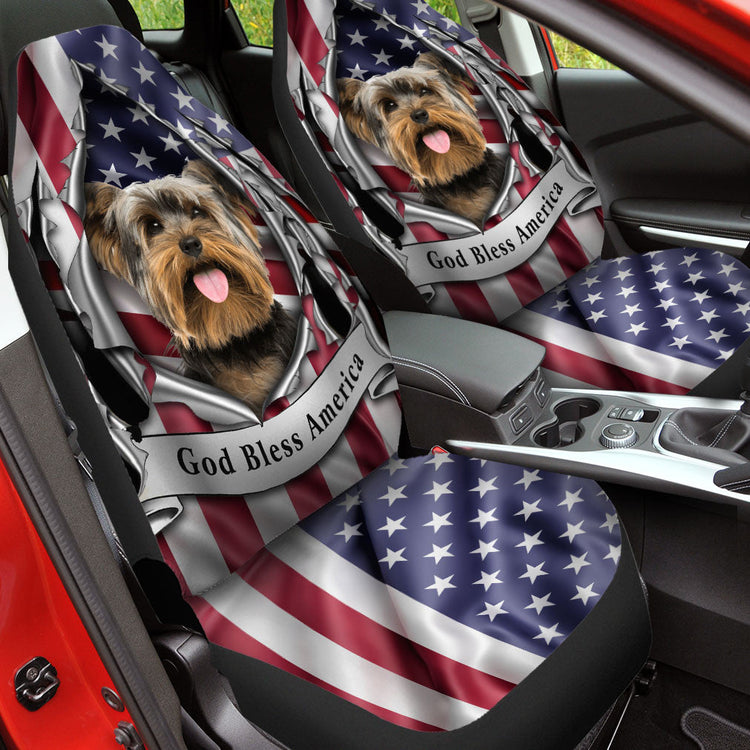 Yorkshire Terrier Dog Inside Flag Gob Bless America Car Seat Covers