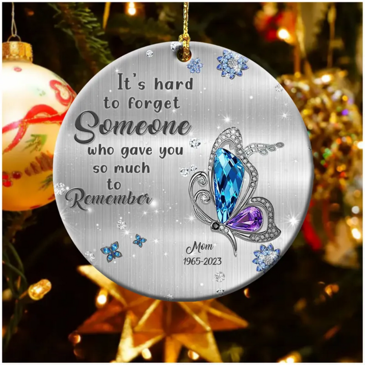Hard to forget someone, remember personalized Circle Ceramic Ornament