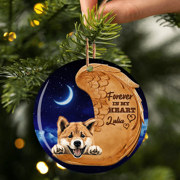 Home Ceramic Ornament Personalized Akita Christmas Forever In My Heart Wing Memorial, Gift for Dog Lovers Flat Acrylic Ornament