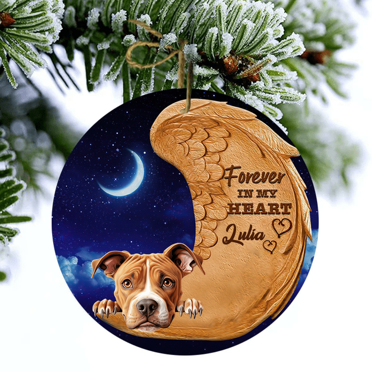 Personalized American Pit Bull Terrier Christmas Forever In My Heart Wing Memorial, Gift for Dog Lovers Flat Acrylic Ornament