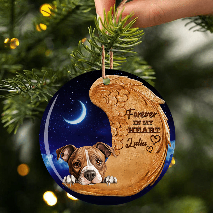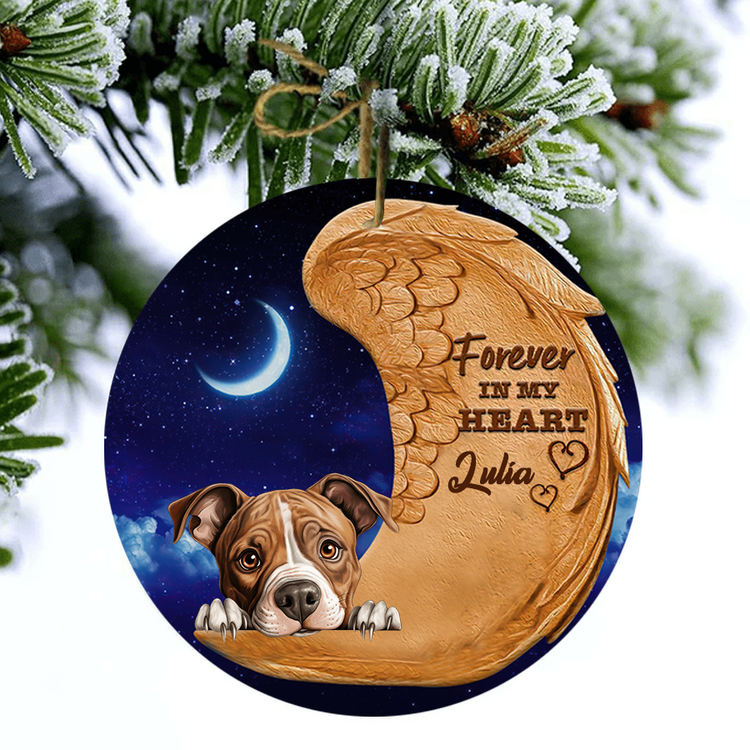 Personalized American Staffordshire Terrier Christmas Forever In My Heart Wing Memorial, Gift for Dog Lovers Flat Acrylic Ornament