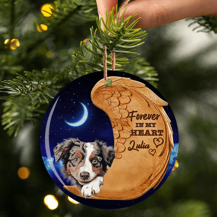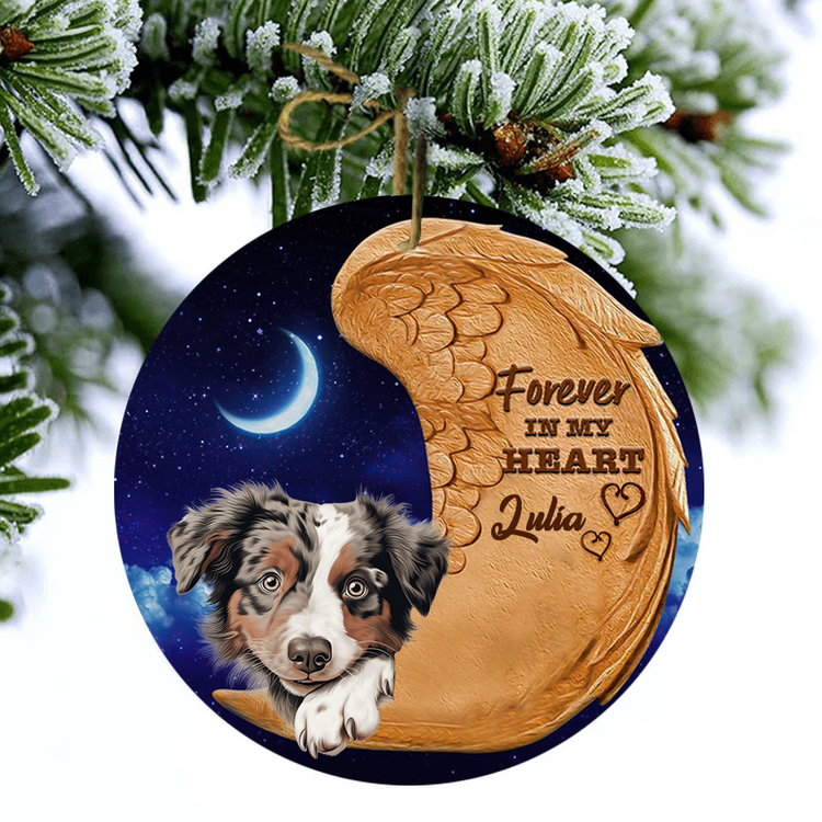 Personalized Australian Shepherd Christmas Forever In My Heart Wing Memorial, Gift for Dog Lovers Flat Acrylic Ornament
