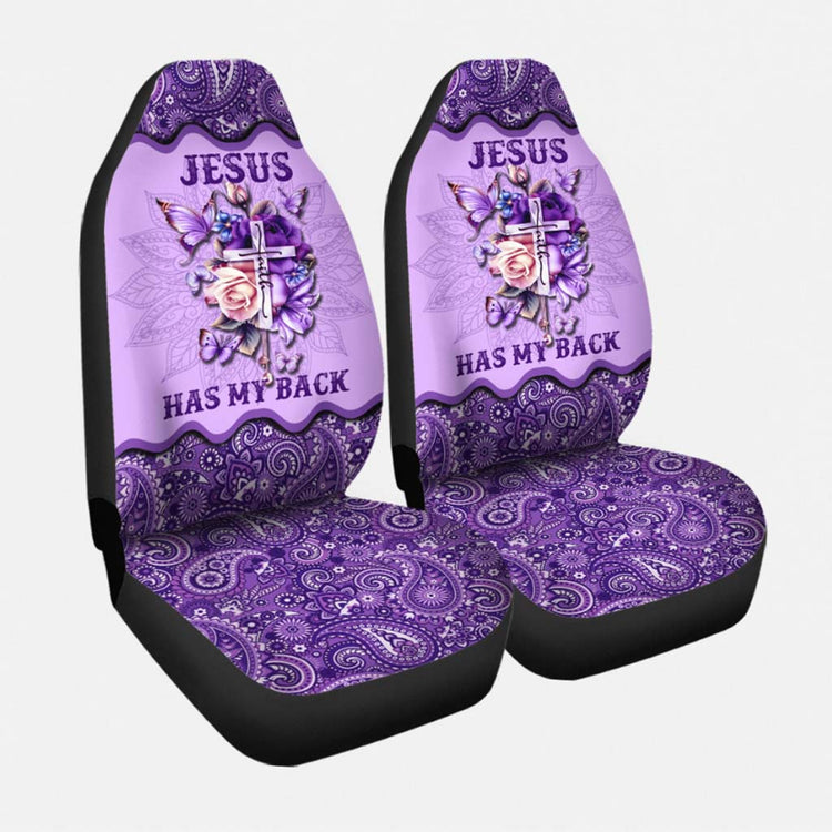 Purple Front Car Seat Cover, Women Car Seat Cover, Jesus Has My Back Christian Seat Covers