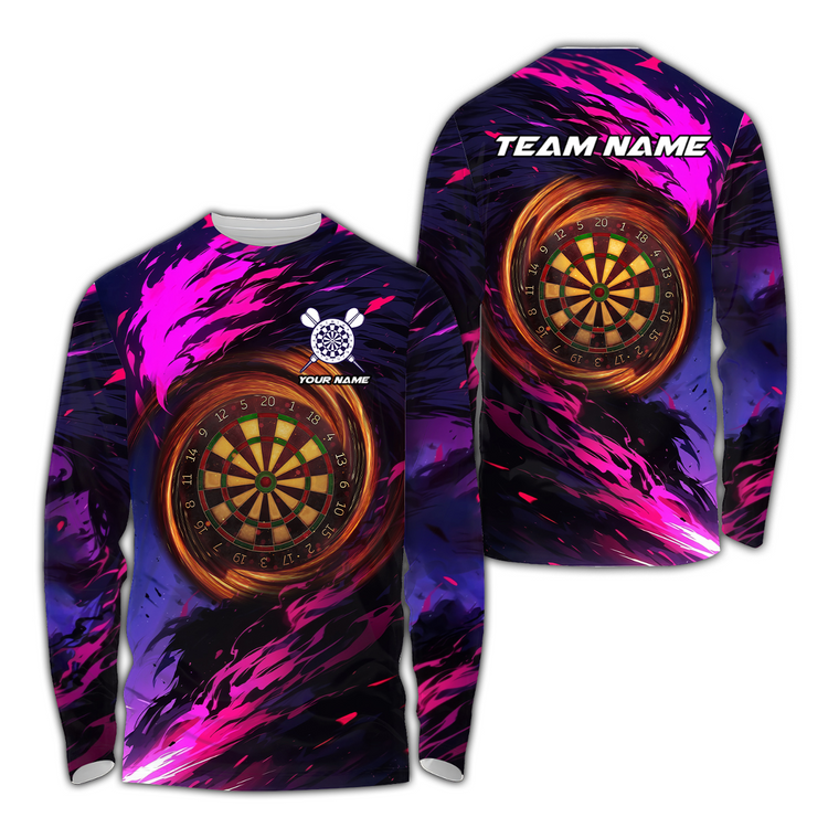 Personalized Name Pink Fire Dartboard 3D Long Sleeve Shirt, Gift for Dart Lovers