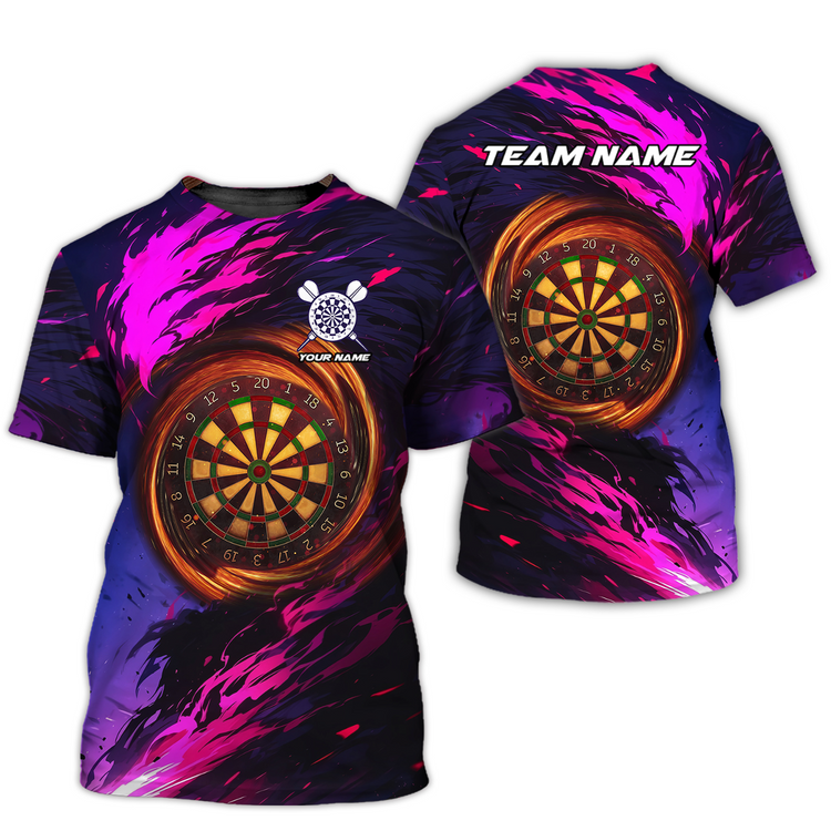 Home Dart Personalized Name Pink Fire Dartboard 3D Long Sleeve Shirt, Gift for Dart Lovers