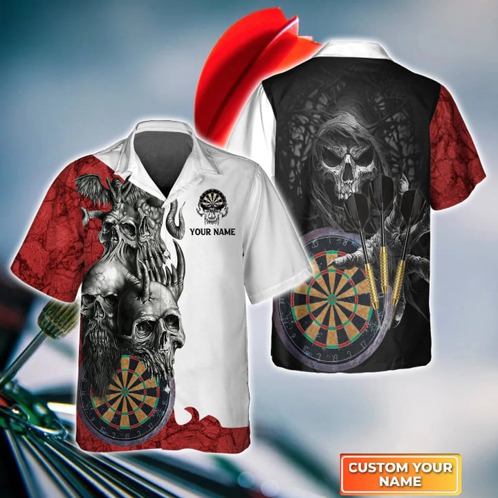 White Dartboard Personalized Name 3D Hawaiian Shirt For Darts Team Player