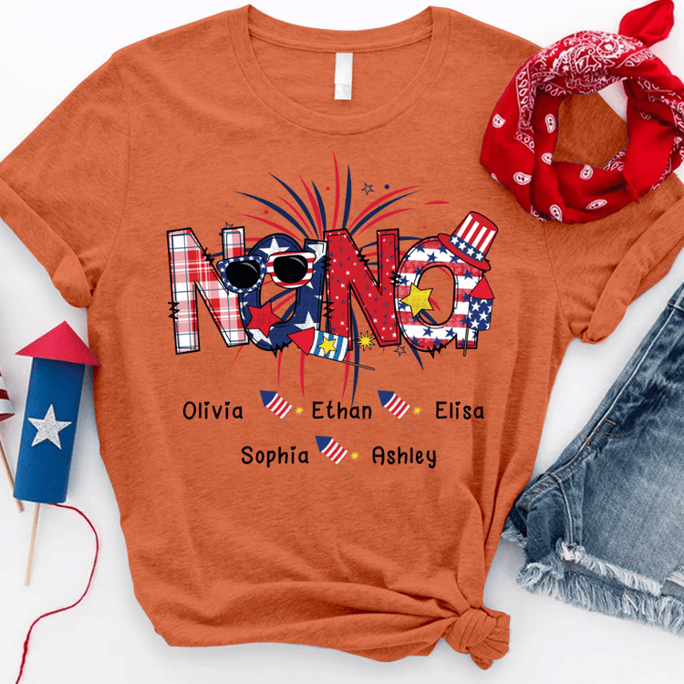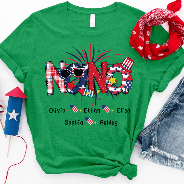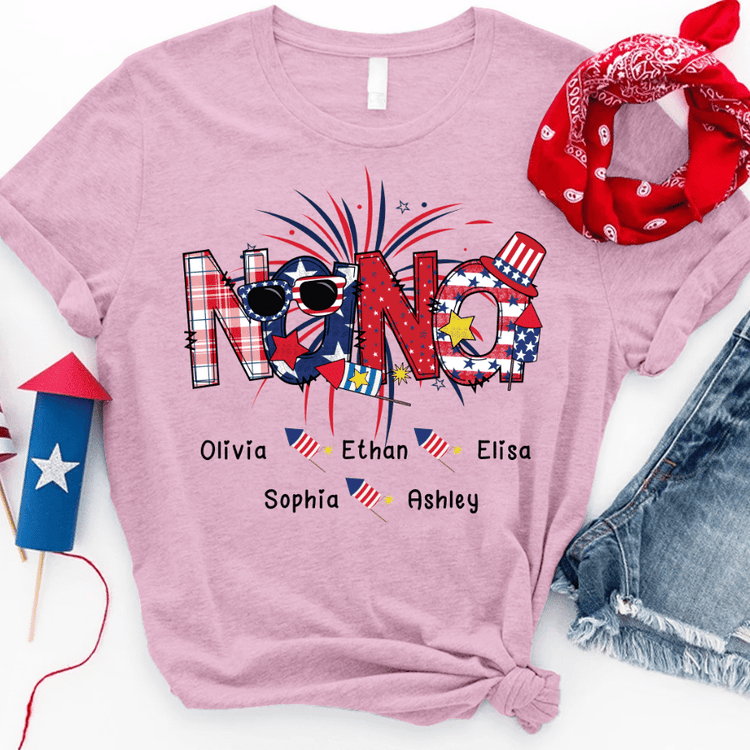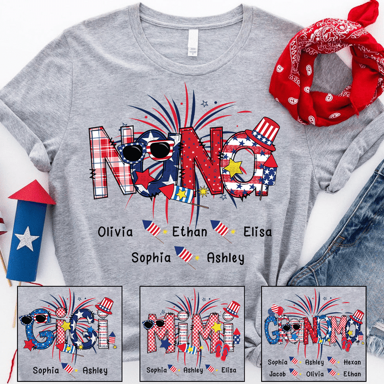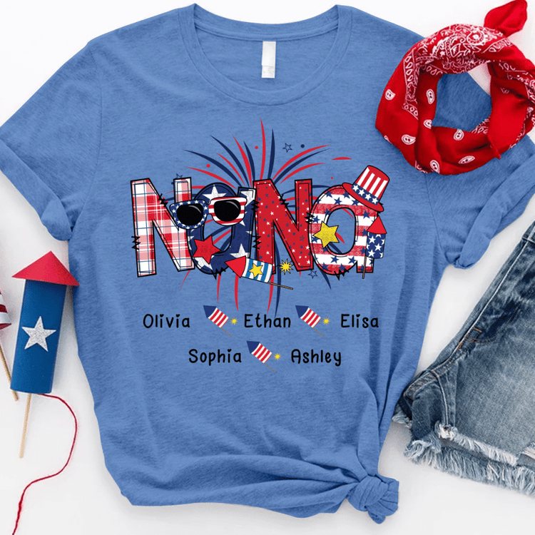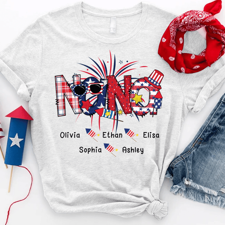 4th Of July Patriotic Doodle Nana And Grandkids CTH01 T-Shirt