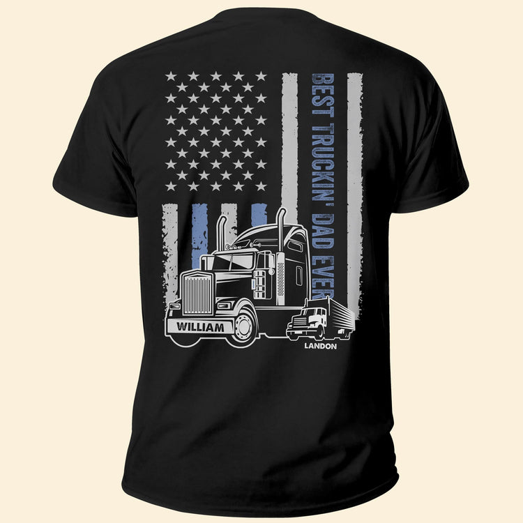 Best Truckin' Dad Ever - Personalized Shirt - Father's Day, Birthday, Gift For Trucker Dad, Papa, Daddy, Grandpa