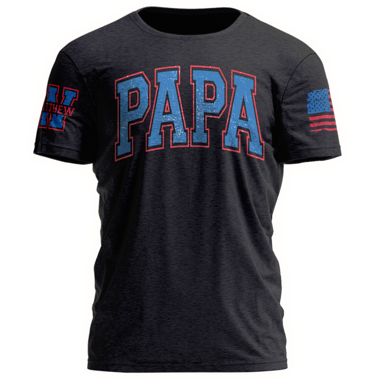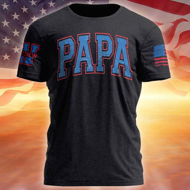 Customized Nickname Grandpa American Flag, Custom First Letter and Kid Name Father's Day Shirt