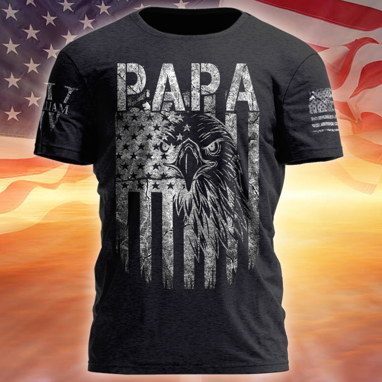 Home Father's day gifts Customized Nickname Grandpa Eagle With American Flag Men's T-Shirt