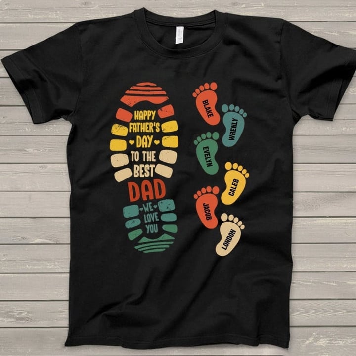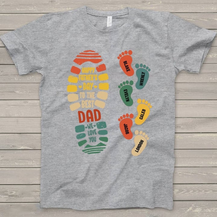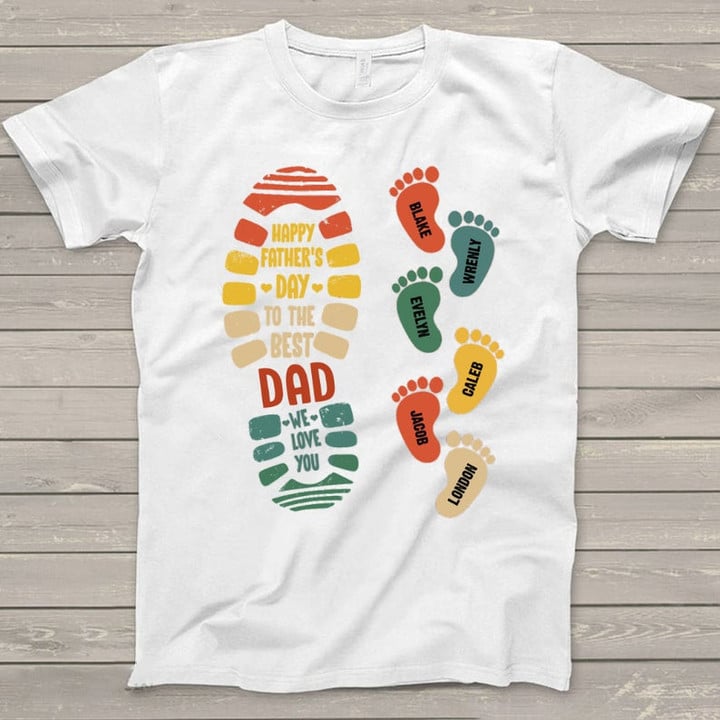 Personalized Dad Shirt, Dad and Kid Footprints Shirt, Custom Grandpa Footprints Shirt