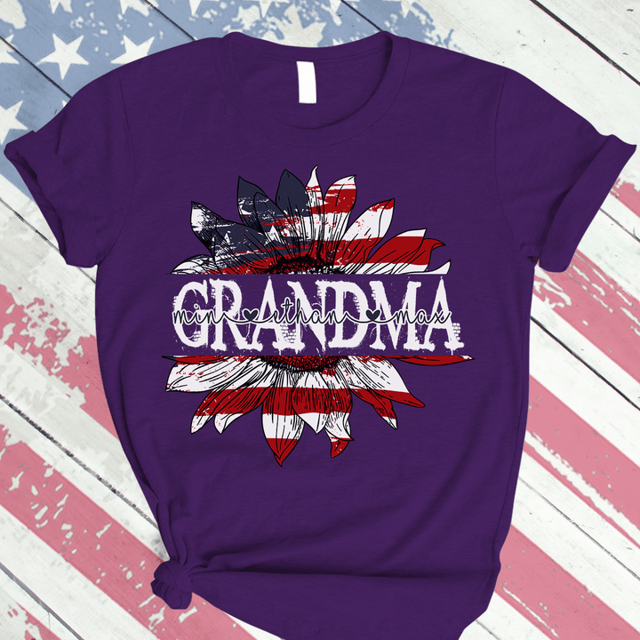 Personalized Grandma & Grandkids sunflower 4th of july T-Shirt