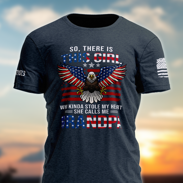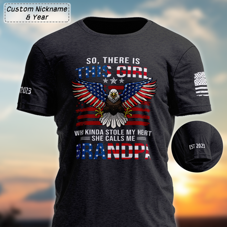 So, There Is This Girl Who Kinda Stole My Heart She Calls Me Grandpa, Custom Grandpa Est, Gift For Grandpa 4th Of July