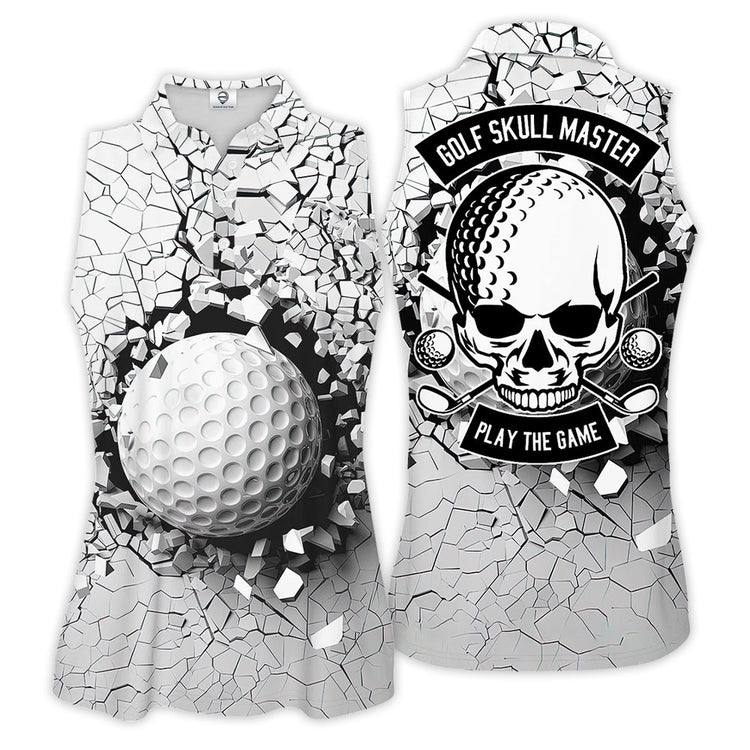 Golf Skull Master Play The Game Sleeveless & Zipper Polo Shirt For Woman