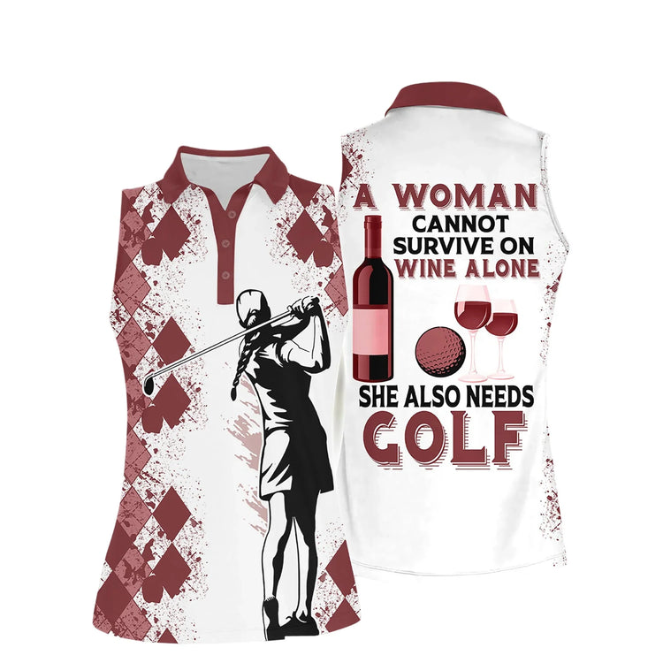 Home Golf Sleeveless Polo Golf Women A Woman Survive On Golf And Wine Women Short Sleeve Polo Shirt