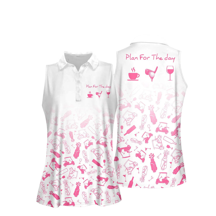 Plan For The Day Seamless Golf Pattern Women 3D Short Sleeve Polo Shirt, Sleeveless Polo Shirt
