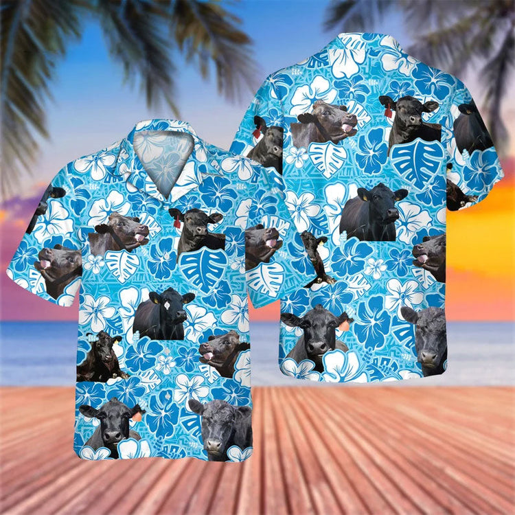 Black Angus Blue Floral Hawaiian All Over Printed 3D Hawaiian Shirt