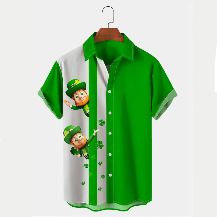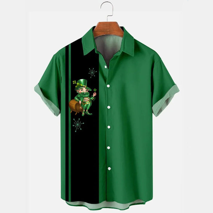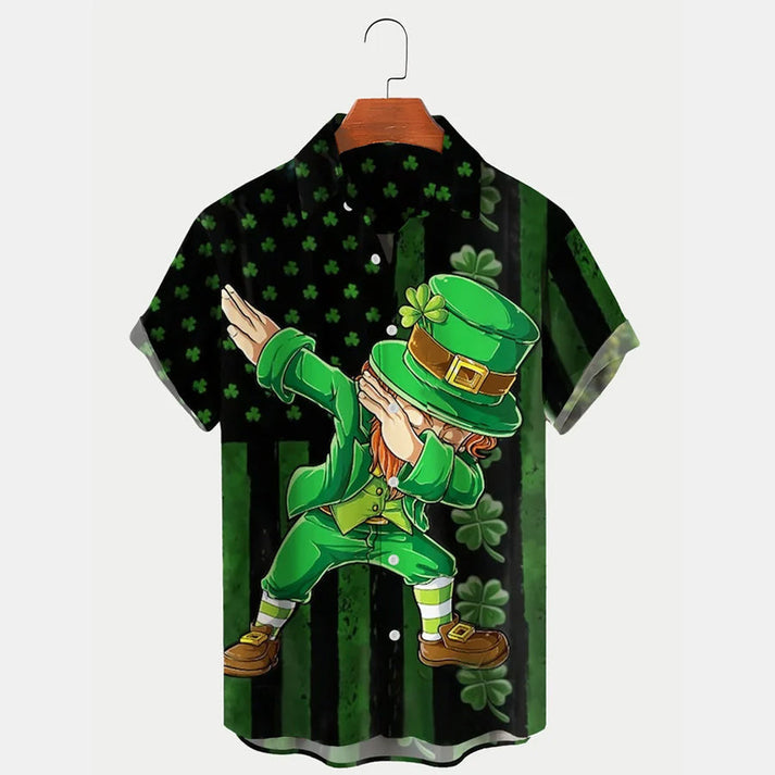 Men's Holiday St. Patrick Leprechaun Day Hawaiian Short Sleeve Shirt, Patrick's day gift