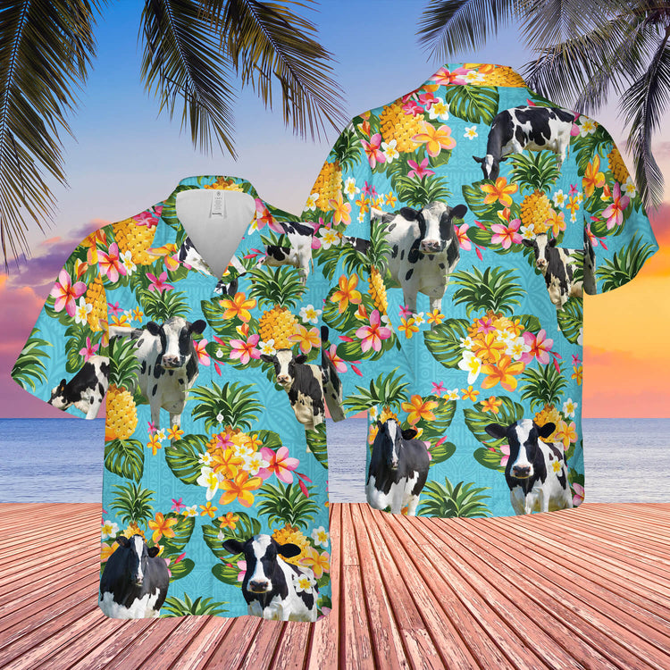 Pineapple Hawaiian Theme For Holstein Friesian Cattle Lovers All 3D Printed Hawaiian Shirt
