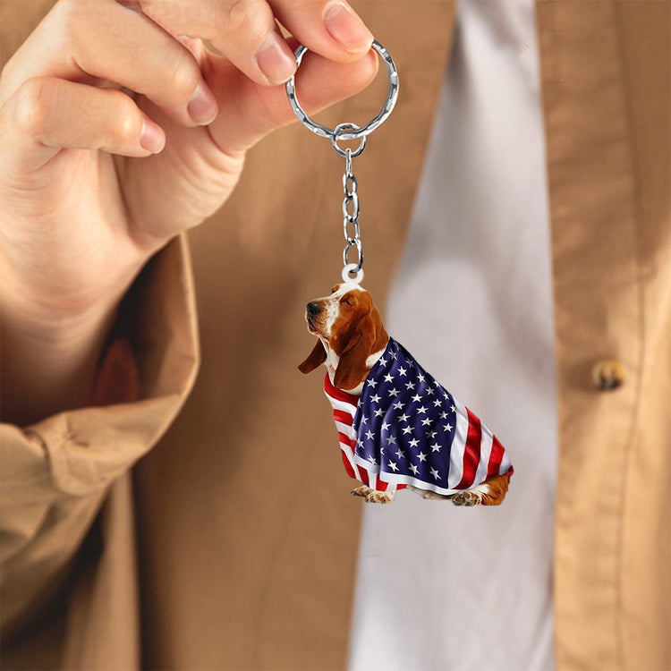Basset Hound American Patriot Flag Acrylic Keychain