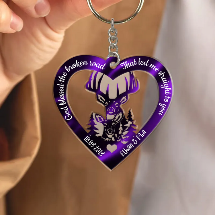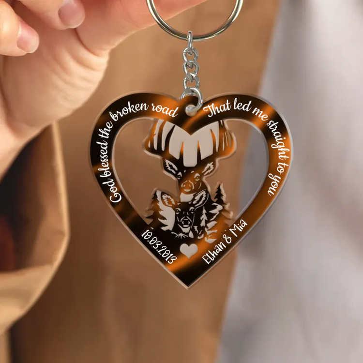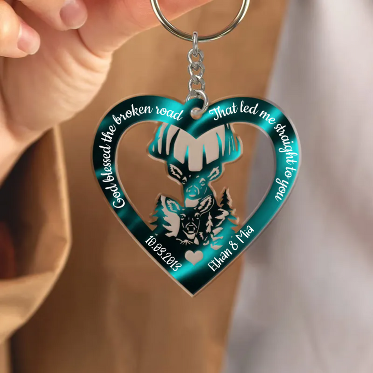 Hologram Heart With Buck And Doe Custom Acrylic Keychain, Personalized Valentine's Day Gift for Him For Her