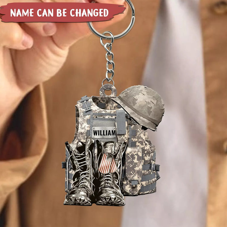 Home Keychains Military Uniform - Personalized Boots & Hat Flat Acrylic Keychain Custom Name Dad Veteran Keychain