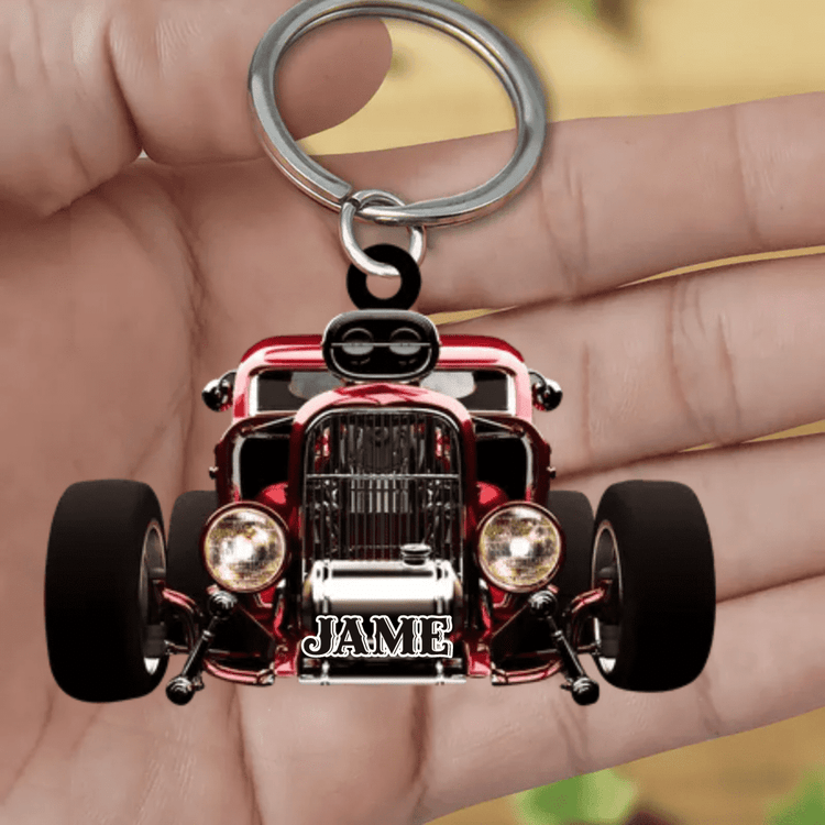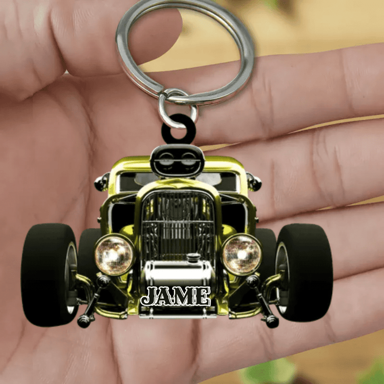 Personalized Hot Rod Chop Shop Flat Acrylic Keychain - Hot Rod Gift for Him