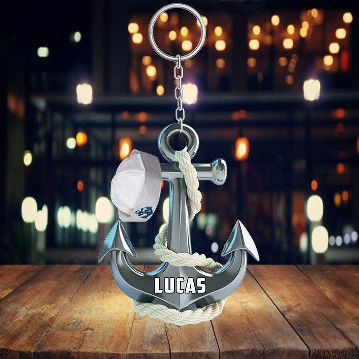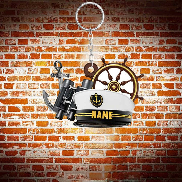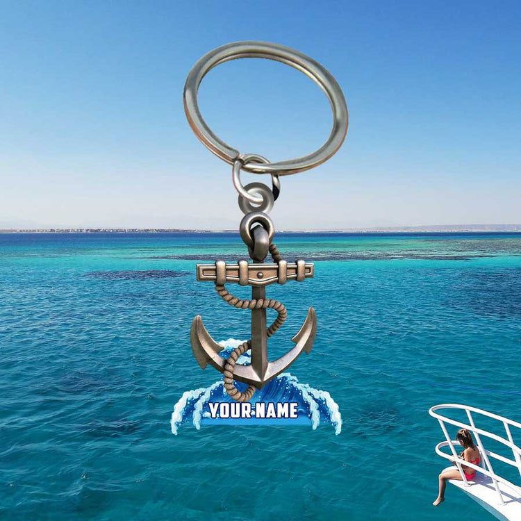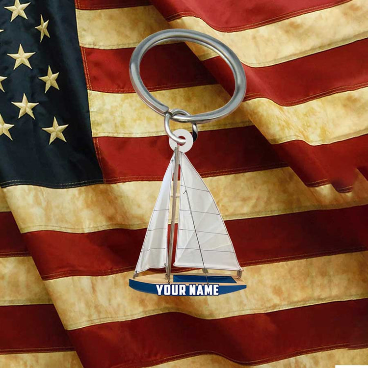 Personalized Sailboat keychain, Custom Name Flat Acrylic Keychain for Sailor